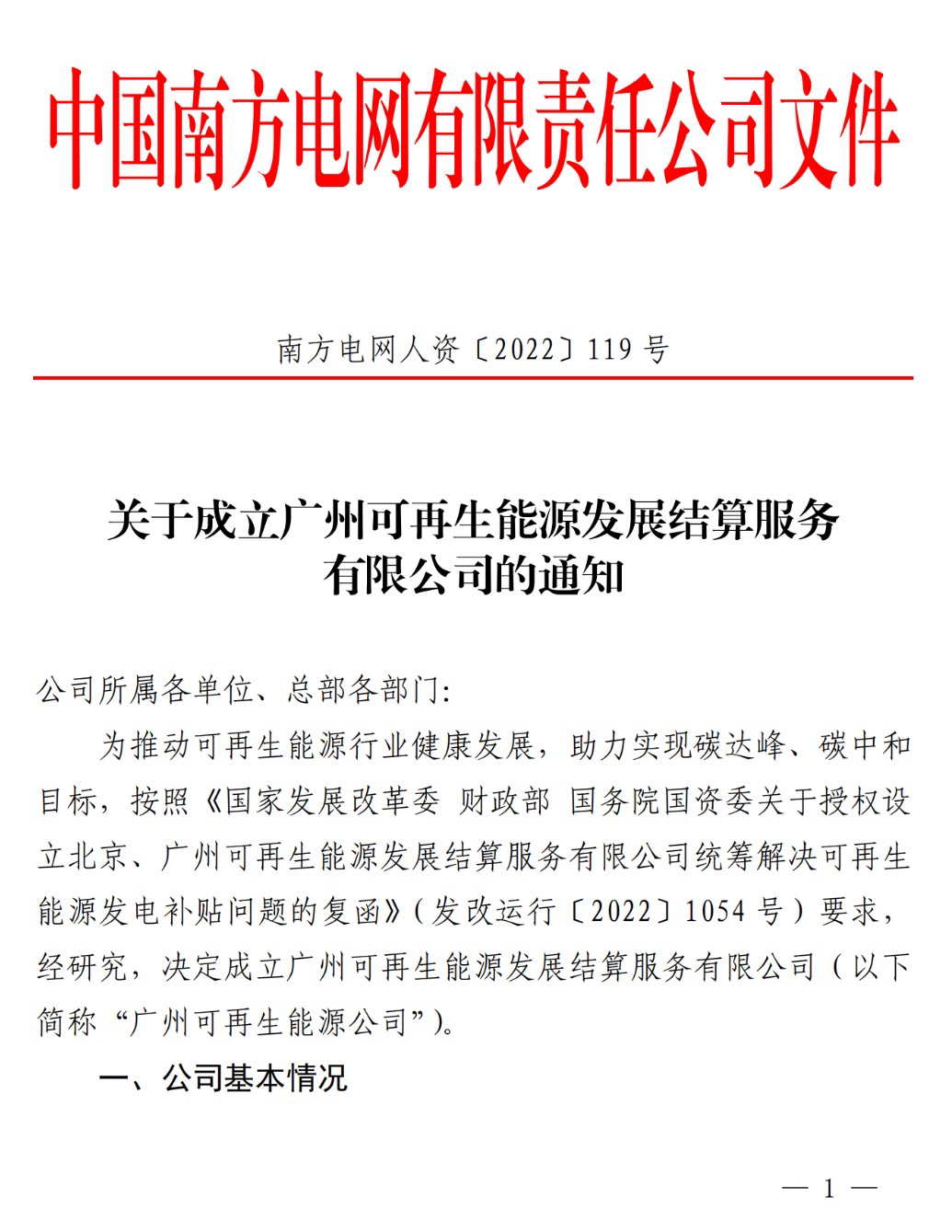 8月11日,中國南方電網(wǎng)有限責(zé)任公司發(fā)布《關(guān)于成立廣州可再生能源發(fā)展結(jié)算服務(wù)有限公司的通知》,為助力實(shí)現(xiàn)碳達(dá)峰、碳中和目標(biāo),按照《國家發(fā)展改革委 財(cái)政部 國務(wù)院國資委關(guān)于授權(quán)設(shè)立北京、廣州可再生能源發(fā)展結(jié)算服務(wù)有限公司統(tǒng)籌解決可再生能源發(fā)電補(bǔ)貼問題的復(fù)函》要求,研究成立廣州可再生能源發(fā)展結(jié)算服務(wù)有限公司。