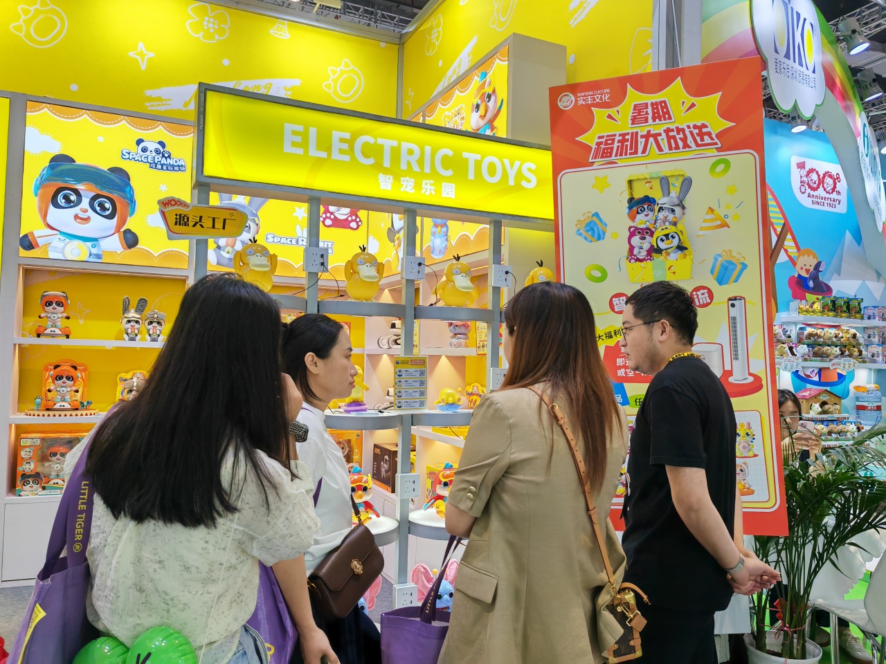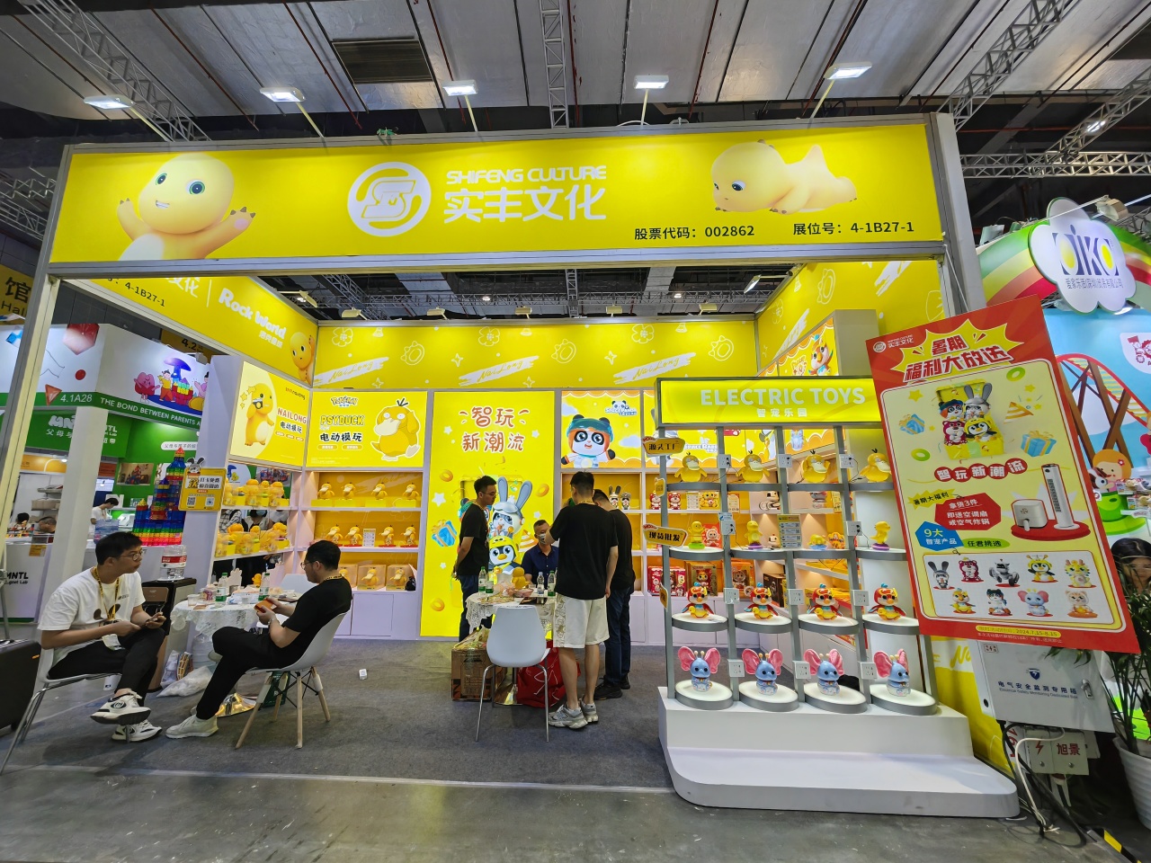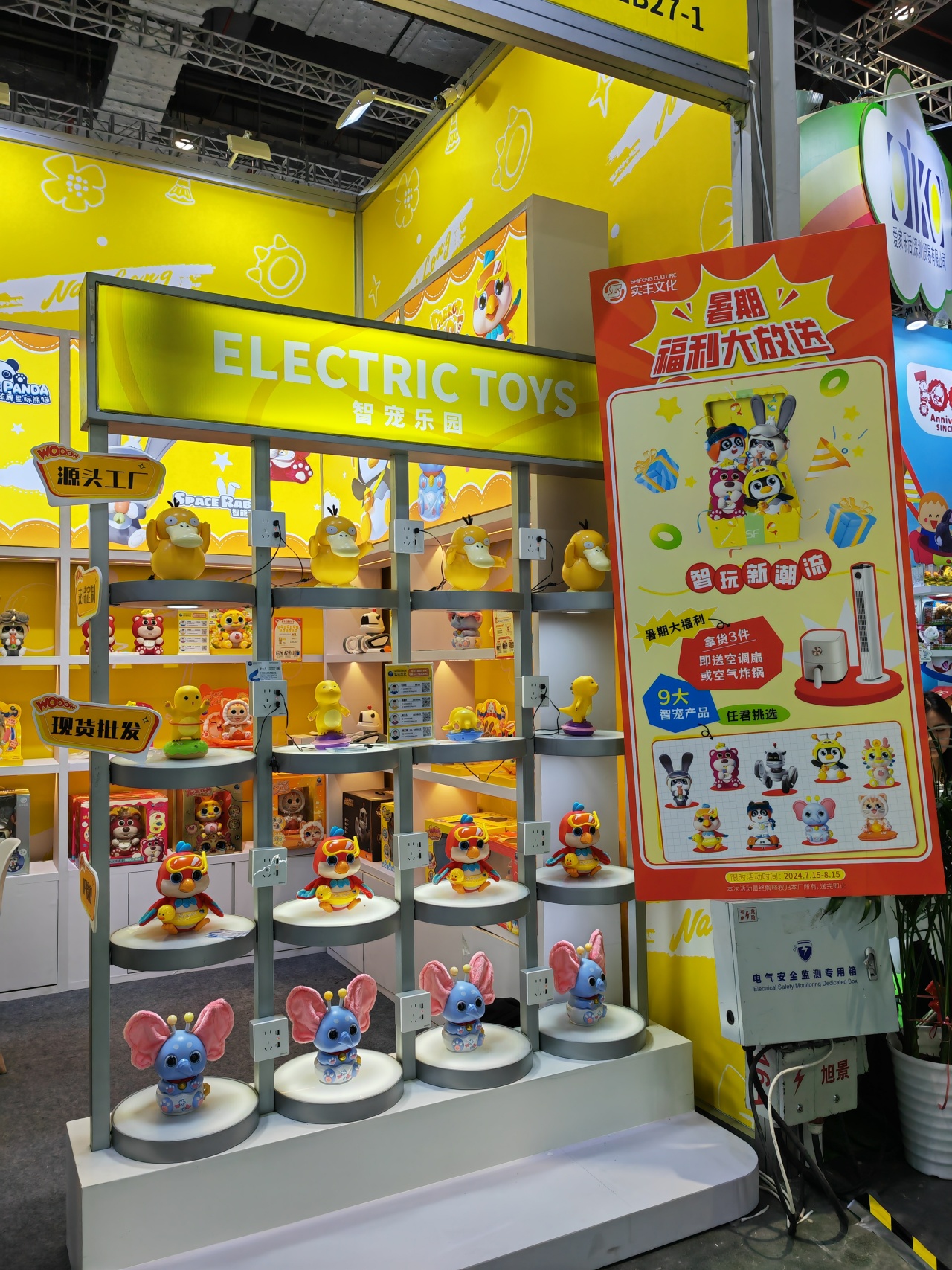 此次展會上,實(shí)豐文化攜眾多與頭部IP聯(lián)名的熱賣產(chǎn)品和新品亮相,有可達(dá)鴨款電動模玩、奶龍電動模玩系列等,公司精美的產(chǎn)品吸引了眾多參觀者,現(xiàn)場人氣持續(xù)爆棚。