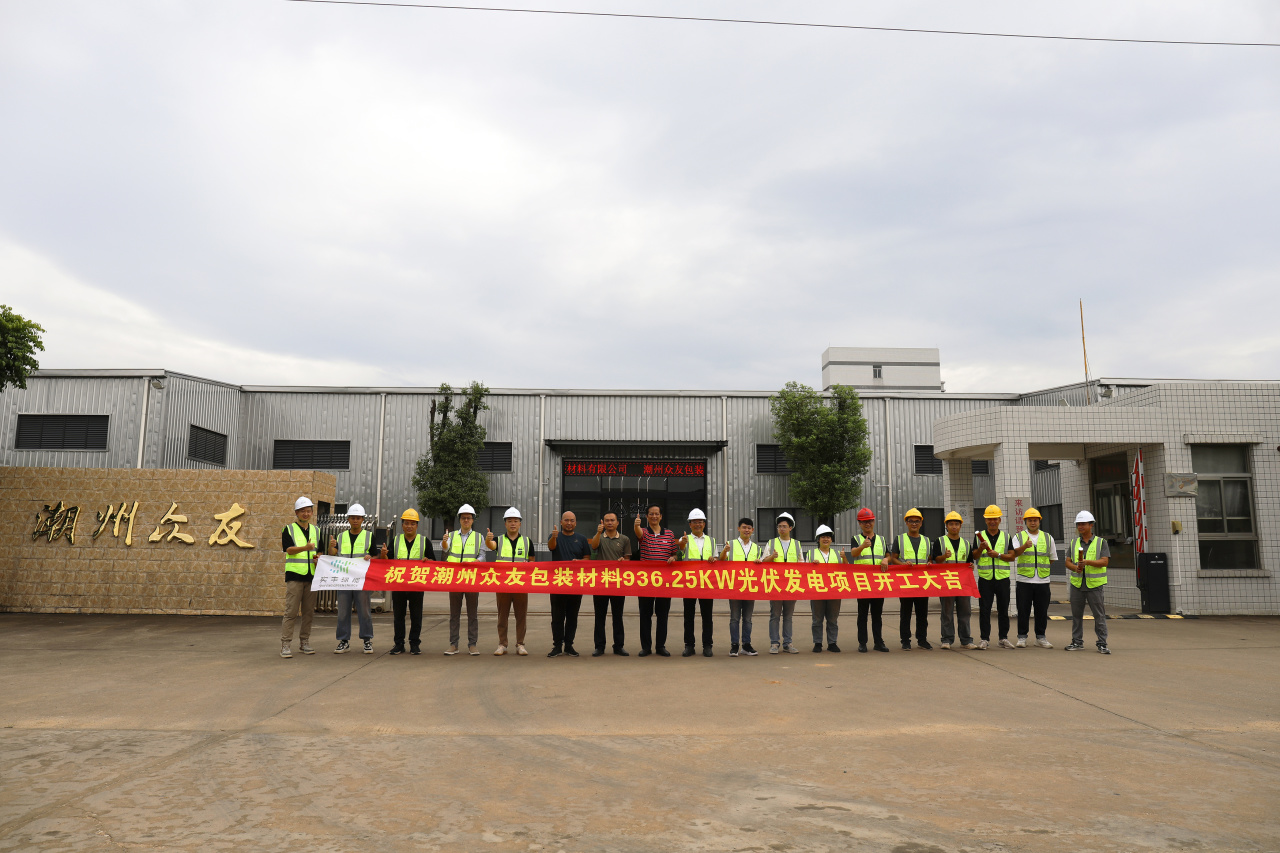 2024年7月25日上午,實(shí)豐文化發(fā)展股份有限公司(以下簡(jiǎn)稱(chēng)“實(shí)豐文化”)下屬公司實(shí)豐綠色能源(汕頭)有限公司(以下簡(jiǎn)稱(chēng)“汕頭綠能”)投資建設(shè)的潮州眾友包裝材料有限公司(以下簡(jiǎn)稱(chēng)“潮州眾友”)936.25kWp分布式光伏電站開(kāi)工儀式圓滿(mǎn)舉行。
